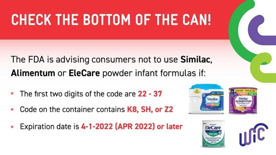 - Examine formula can stamp to ensure it is not part of the recall, and that it has not expired (once a can of powder formula has been opened, it is good for 30 days).
