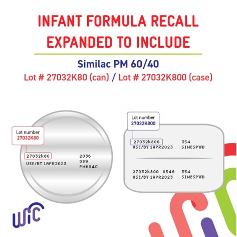 Consumers using Similac PM 60/40 should avoid products with the lot code 2732K800.